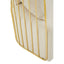 This sofa lends an art deco allure to the area with the combination of natural fabric and gold effect metal frame. A series of stainless steel bars create an angular profile, and the foam-padded seat with four pillows offers a cosy seating experience.