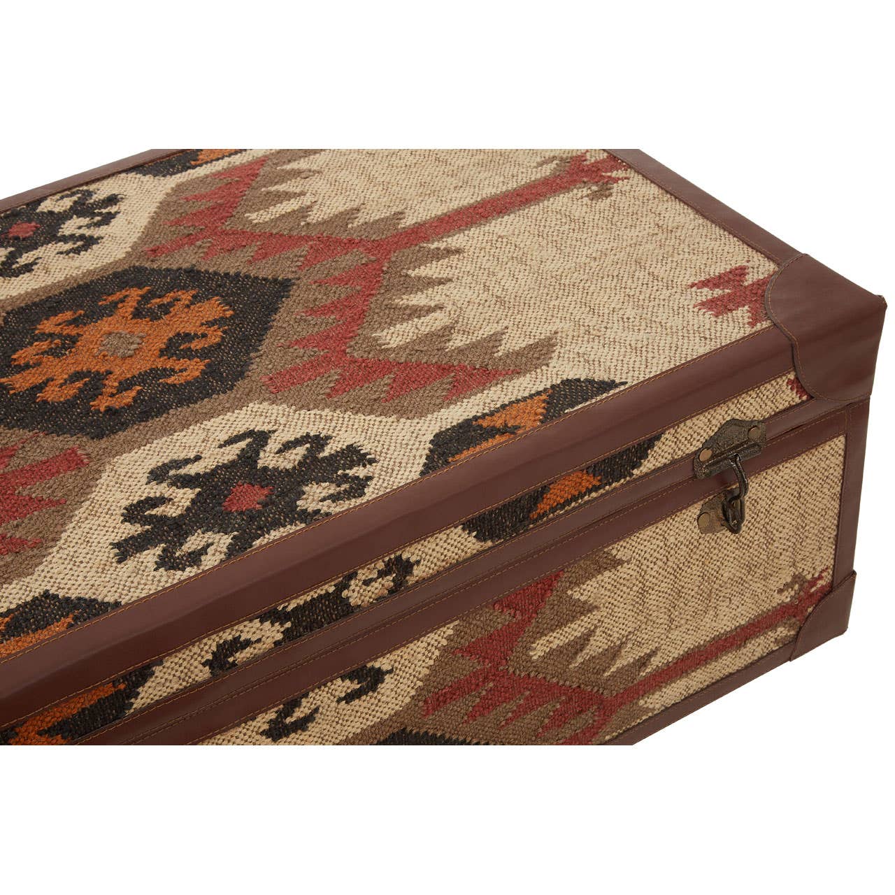 Providing your home with a storage solution while adding warmth to your décor, the coffee table trunk is stylish and practical. The table is made from robust galvanised iron and feature a striking multi-print cotton design that will create a striking look in any setting. Giving it something more, the hinged top opens up to reveal ample storage space for magazines, books, remote controls and much more, helping to keep your room organised and tidy. The surface space is perfect for displaying plants, flowers, photos and ornaments, giving your home a personal touch. Versatile in use, impressive in style, the coffee table trunk will complement most settings, adding its own unique look.