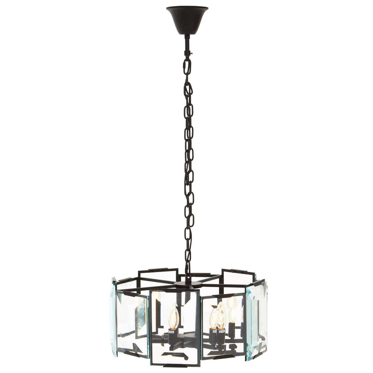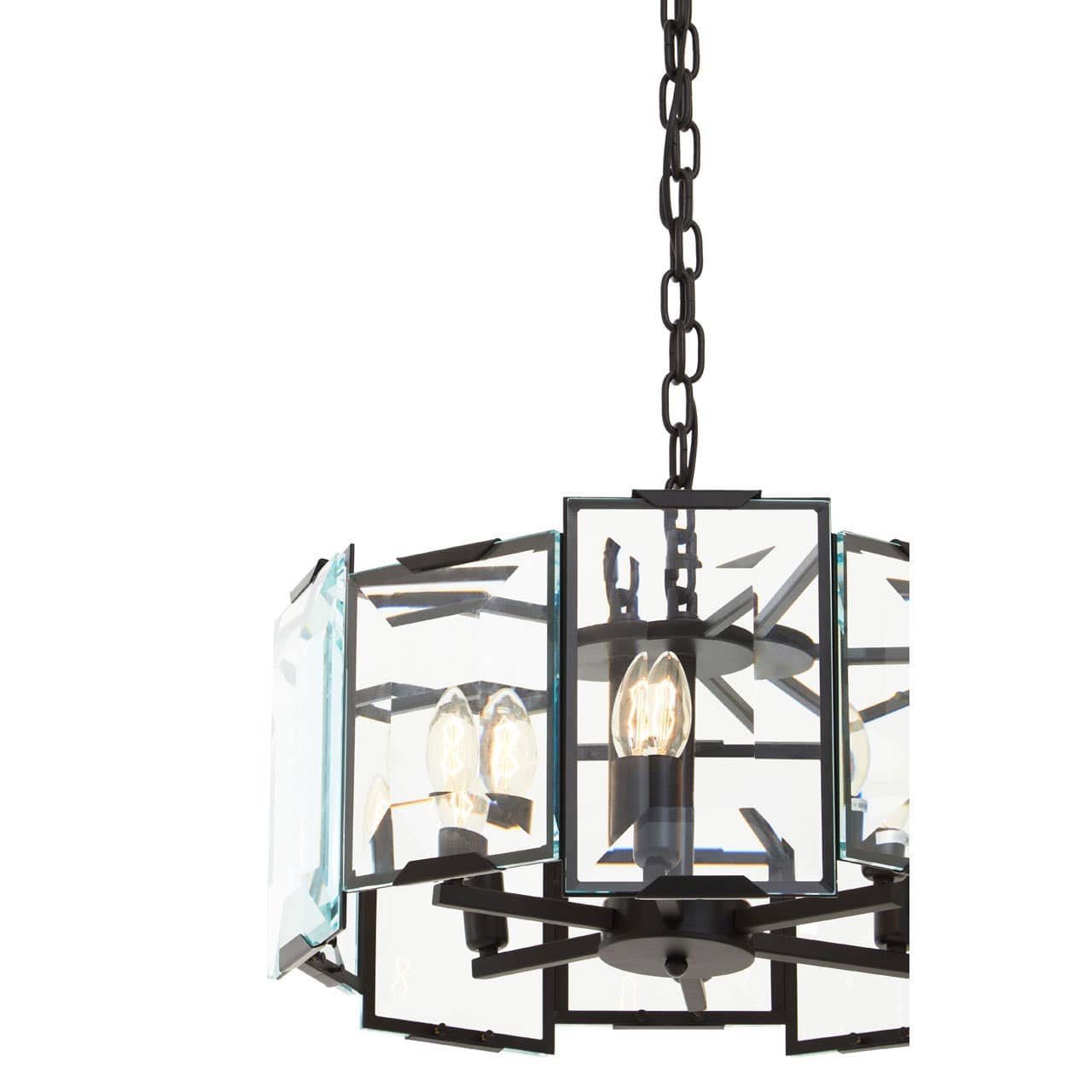 The matte black finish heightens the light airy look of the chandelier, while clear glass cylinders surround the stately silhouettes of the bulbs, this chandelier with 56cm in diameter and six bulbs creates a chic focal point.