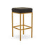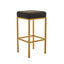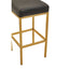 This bar chair features a square padded seat upholstered in black faux leather. Gold finish legs and footrests elevate glam appeal and sophistication of the modern design.