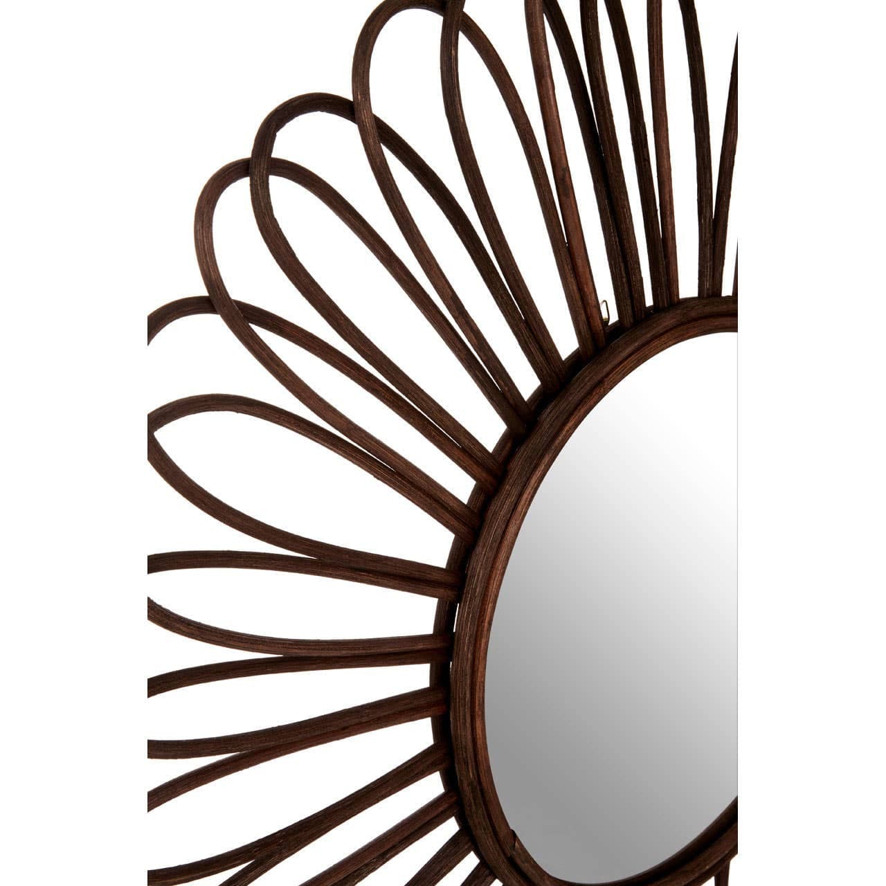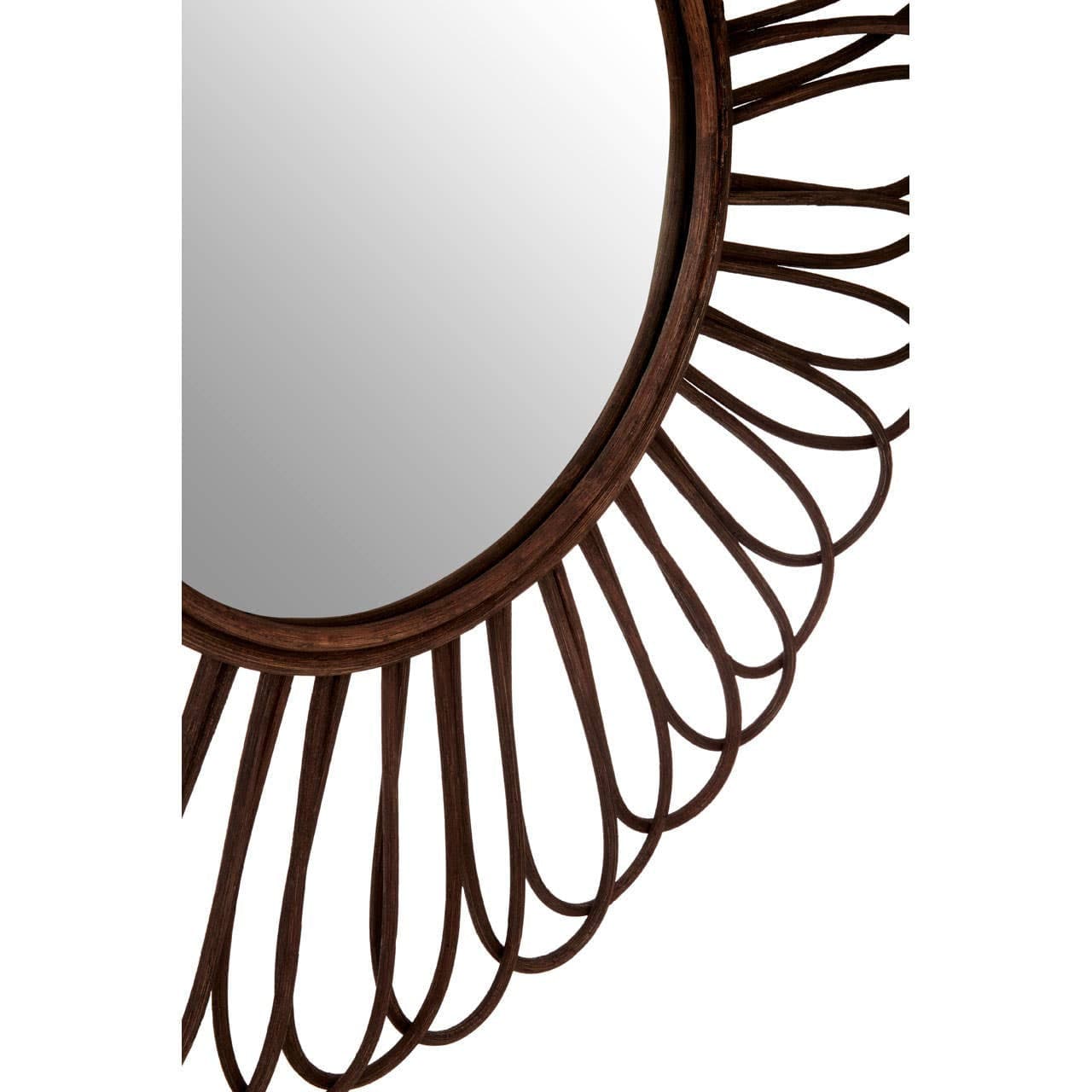 This wall mirror brings a natural style to interiors. The looped rattan frame has a black colour that makes it versatile when it comes to styling. A double border of rattan surrounds the central mirror.