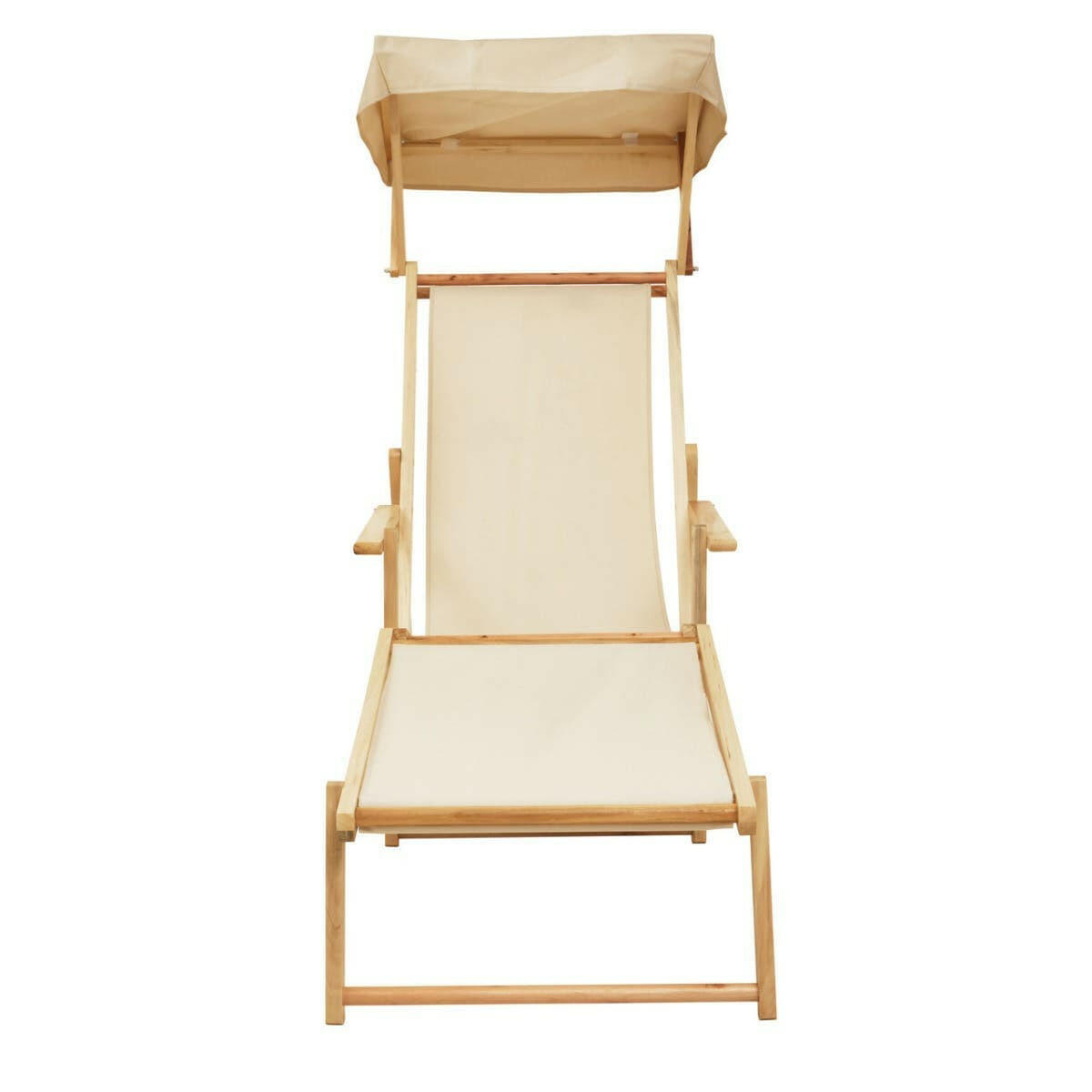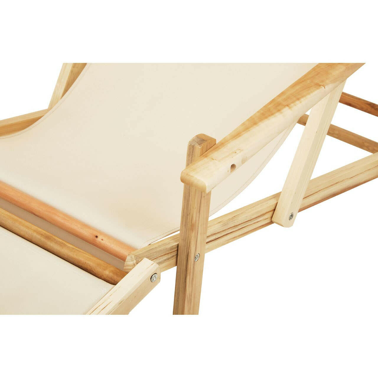 This lounger is suitable for outdoor use, thanks to the sturdy cream coloured fabric. This lounger is weather-resistant and easy to clean. The backrest can be adjusted for a comfortable position. Made from solid wood in natural finish, it combines style and functionality.