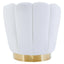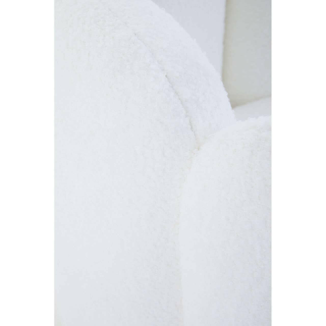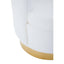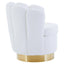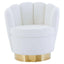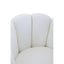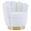 Upholstered in off white teddy fabric, this chair updates a modern statement with scalloped seashell edges and vertical channel tufting. The seat in sumptuous padding and faux fur accent is supported by stainless steel base in a luxe gold finish.