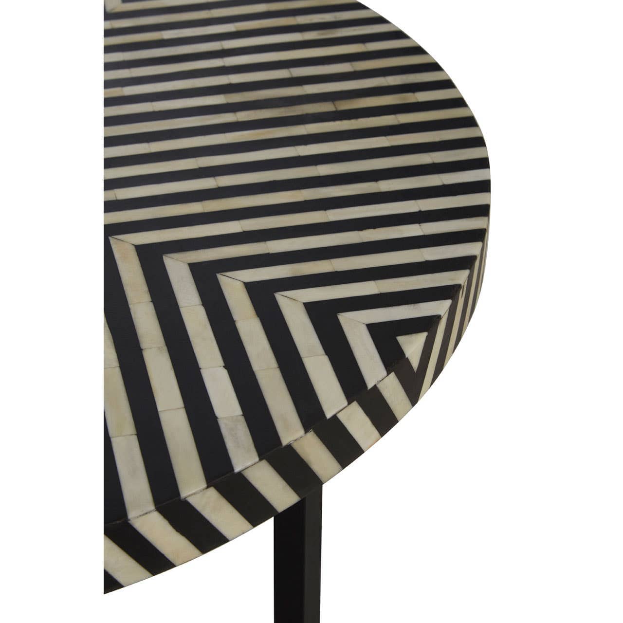 Expertly handcrafted, this coffee table is made from black metal, straight legs that combine to form a cross-leg base and an acacia wood tabletop with bone inlay detailing. The minimal, monochromatic side table can be styled with more coordinating furniture within the boho range.