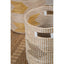 Each basket is crafted from renewable seagrass and has a natural finish. Cut-out handles at the top allow them to be lifted and carried easily. Metallic coloured arrows create a dynamic pattern on their surfaces.
