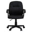 This low back black chair is upholstered in black leather effect fabric covering over a thickly padded seat and back for extra comfort and easy spot cleaning. Also featured are a strong black base and adjustable hydraulic lift.