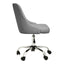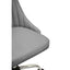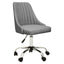 This chair offers extra plush seating along with a stylish linear tufted seat upholstered in grey leather effect fabric. With an armless wide seat, its three-sixty degree swivel, adjustable seat and casters are based on a sturdy base.
