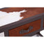 Its slim legs and cabinet edging are dressed in real leather, coloured brown to coordinate with the tactile cowhide. The cabinet features a trio of drawers with real leather handles. Stud detail adds a metallic accent to the natural materials and complements the stainless steel display shelf at the base. *This product is made from genuine cowhide. Individual units are likely to have slightly different colours, textures, or markings from the image as this is a natural material*