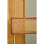This bar chair creates a stylish look with a mix of modern elements. The padded seat is upholstered from black genuine leather, featuring channel tufting, and is supported by a sleek gold finish iron frame, which contrasts the high backrest with cane webbing.