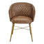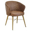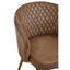 This brown leather chair creates a chic look with the diamond pattern tufting on the backrest. The padded seat has curved arms which enhance style and comfort, sleek and sturdy gold finish legs support the chair and create a luxe feel.