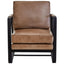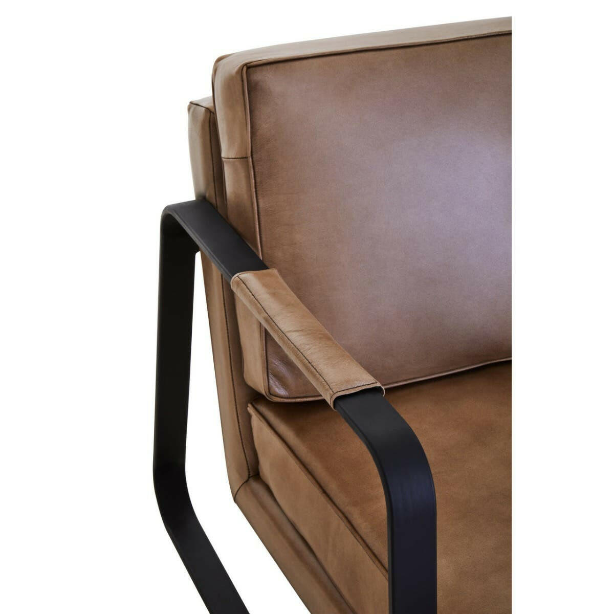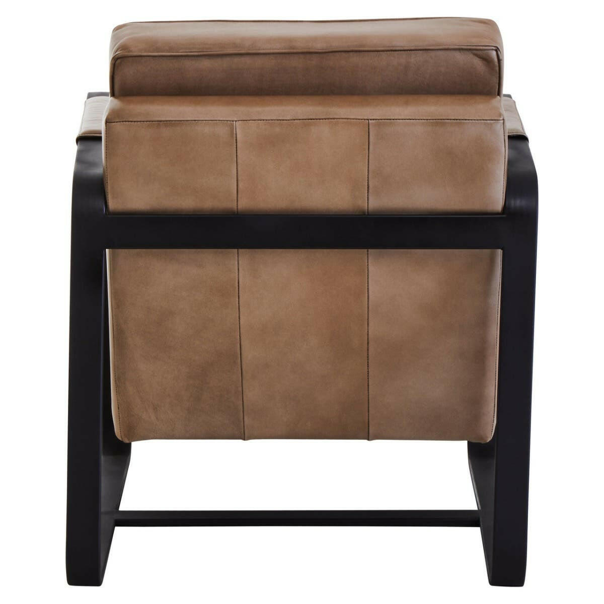 This armchair brings a modern touch with a deeply padded seat in grey leather covering, supported with a comfortable matching cushion. The black finish frame with a curved aesthetic offers stability to the ergonomically designed recliner back.
