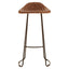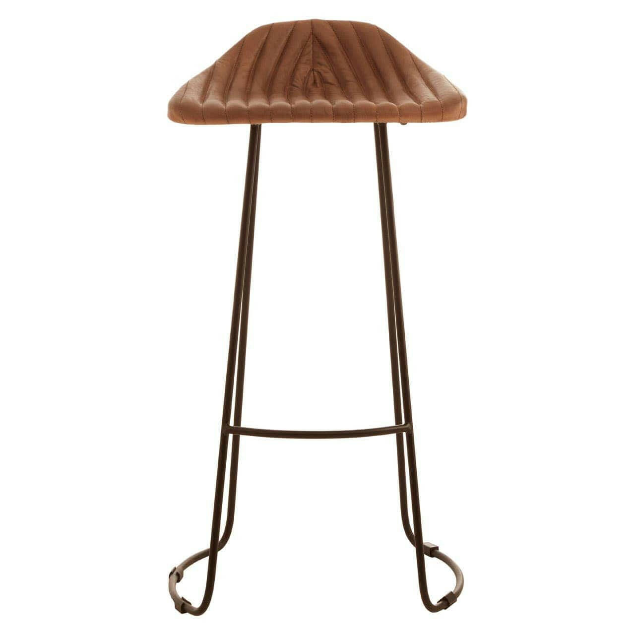 With its long, slim legs and tapered seat, the Buffalo stool's elegant silhouette is sure to elevate its surroundings. The seat is upholstered with light brown leather and sports a fluted finish that accentuates its outline. The legs are made from iron, are coloured black, and incorporate a footrest at the front.
