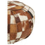 This intricately stitched pouffe features piping on the sides that accentuate its rounded shape. The patchwork cowhide includes white, grey, brown and ochre tones. Each patch is fringed by angular stitching that adds to the pouffe's rugged aesthetic. Style it with the Buffalo leather butterfly chair.