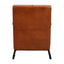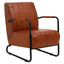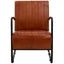 Upholstered in tan genuine leather, this armchair features vertical channel detailing on the padded seat and backrest. The sturdy black iron frame adds to the sleek aesthetic of this accent armchair.
