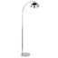 Add light to surroundings with the contemporary Calle floor lamp. The bowl shaped lamp head is suspended from a short and slender arcing neck, and can either be pointed directly downwards or tilted at an angle. Made from strong metal, it features a reflective chrome finish. A broad round base ensures that the lamp remains stable at all times.
