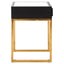 This side table has a single drawer layered with faux black shagreen in a distinctive texture. The sleek legs and knocker style handle in a brushed matte gold finish enhance the table??????s contemporary and opulent appearance.