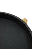 This set of two tray tables have black shagreen tops contrasted with brushed matte gold finish legs. The raised edges of the tops improve functionality while the joined legs at the bottom elevate the overall modern look.