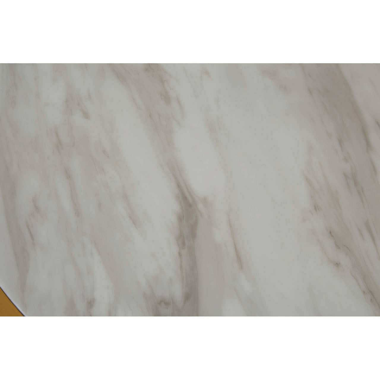 Made from stainless steel, this coffee table has a rounded base in warm metallic hues which gives the minimal design a touch of glam appeal. Faux marble top adds more sophistication to the design and softens the visual aesthetic.