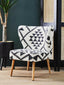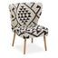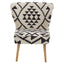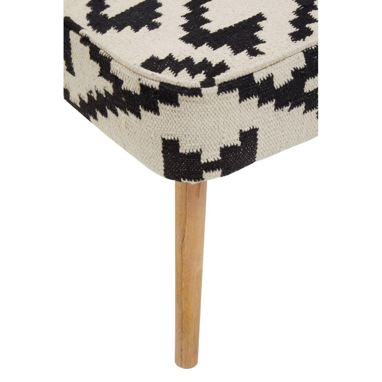 Exhibiting intricate geometric patterns, this chair will make a bold statement to the interior with its sumptuous cotton upholstery and dense foam padding. This chair has mango wood legs that add support and sustainability.