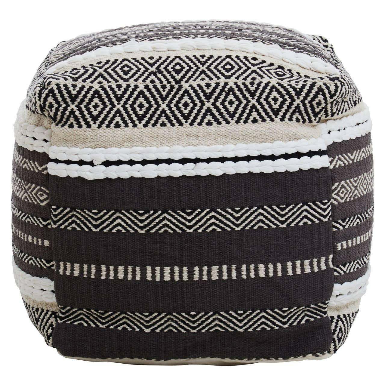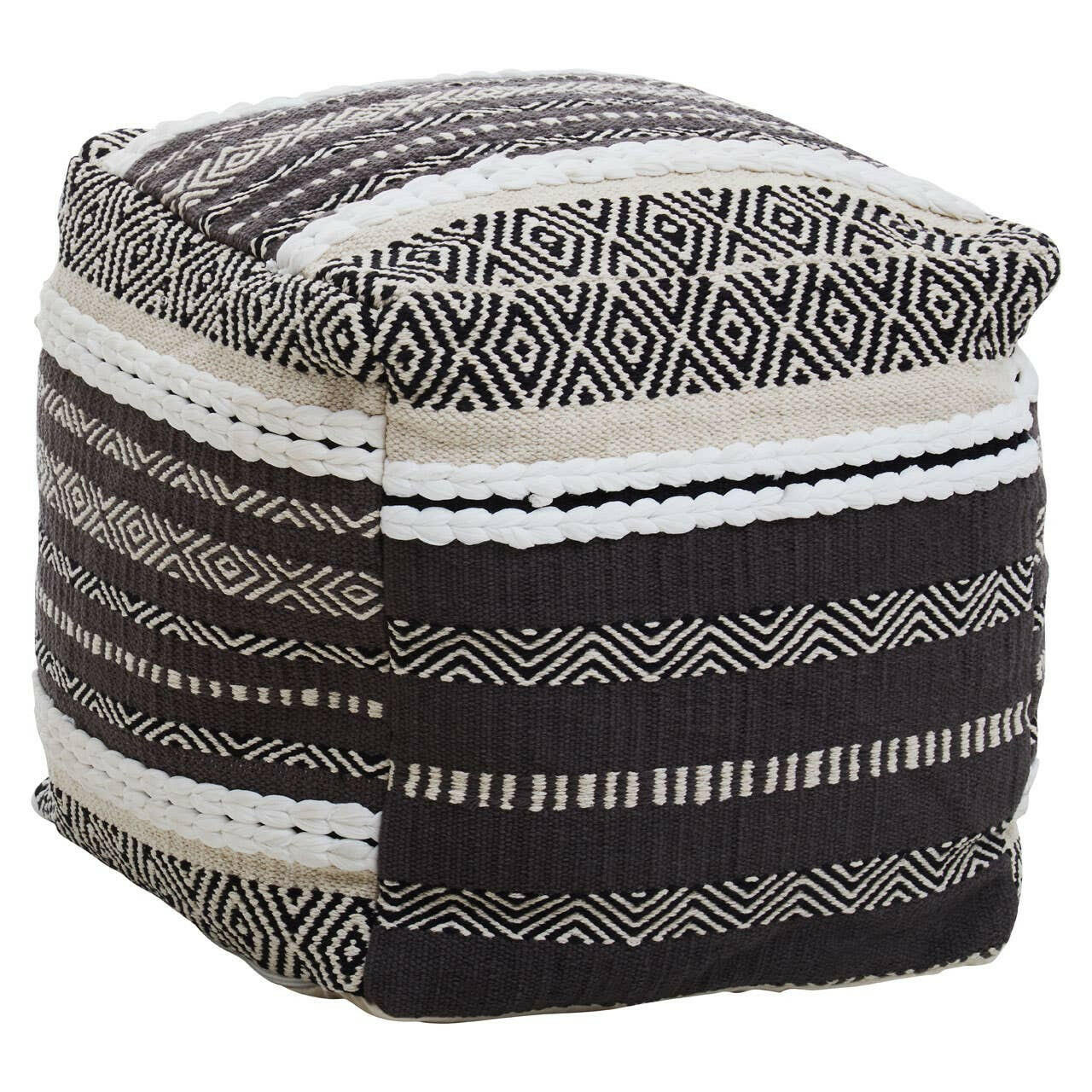 This pouffe is made from cotton fabric, giving it long standing durability. Its grey and white pattern fabric has a boho design, making it a unique style statement.