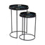 These nesting tables are crafted with a sense of grace and restraint that elevates any space. The metal base forms their thin yet supportive bases while the glamorous abstract top display is what keeps it outstanding.