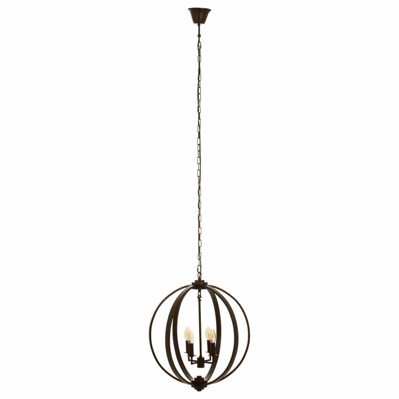 The pendant light's spherical orb-shaped shade is formed from individual shutters that revolve around around the central light fixture that can hold four individual lights.