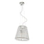This cone-shaped pendant light exhibits clear glass panes that are raked intricately around the chrome finish metal frame. Boasting a crystal-like textured surface, this three-bulb light will illuminate the area with a soft glow.