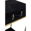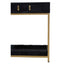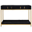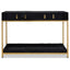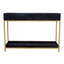 This Chelsea Townhouse console table is almost decadent. The black hair on hide exterior is complemented by 2 drawers offering ample storage solution and supported by the gold frame, creating a luxe modern look.