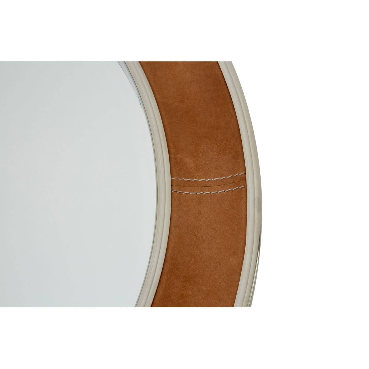 The frame is made from strong steel and features two steel rims, with a nickel finish that complement the tan leather, while adding rich, metallic look. The mirror will give the illusion of space, helping to open up your room.