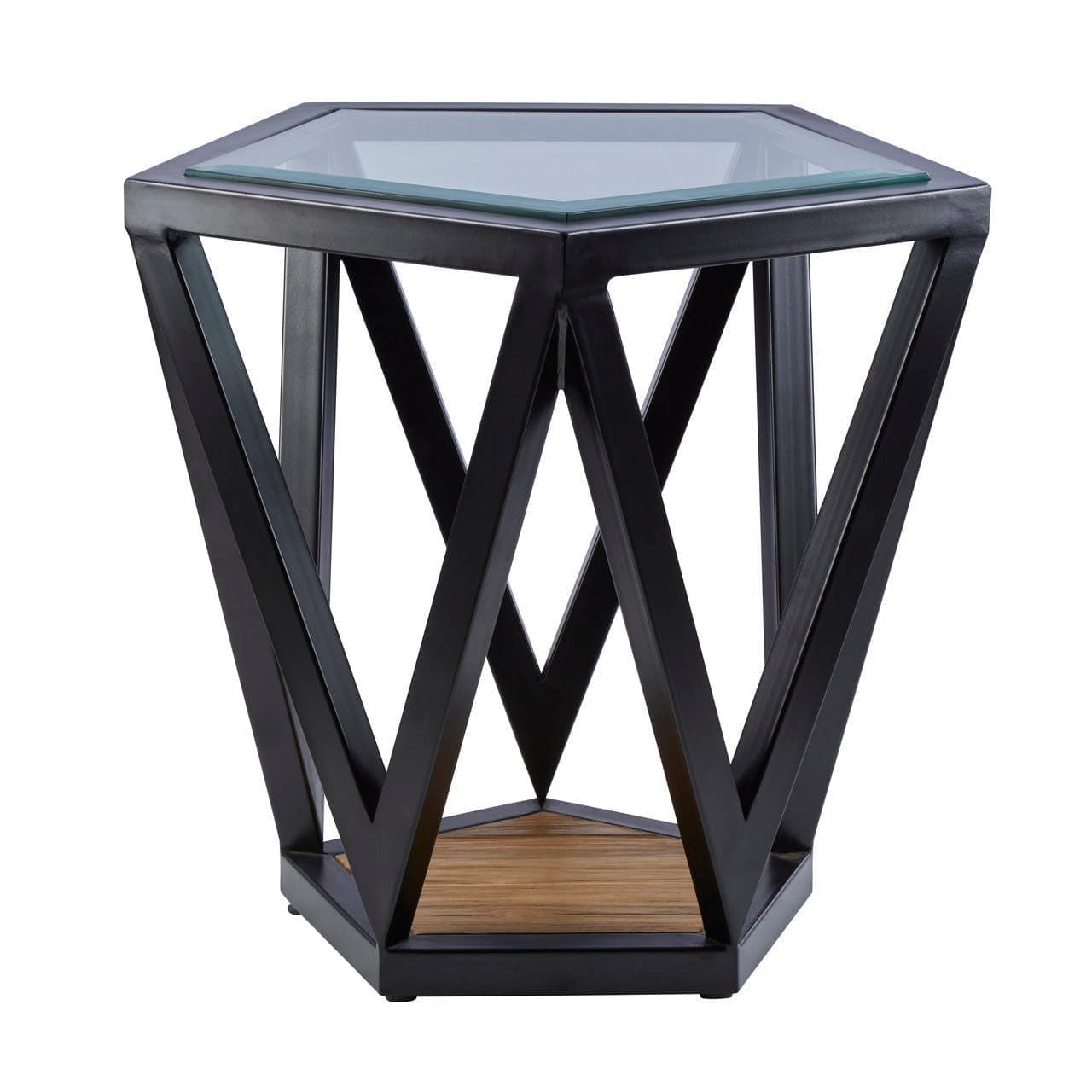 Minimal yet stylish, the Cibo side table features a clear hexagon glass that sits neatly on a black finish geometric frame. The geometric metal fixture of this side table ensures a captivating contrast when paired with vintage or urban aesthetics.