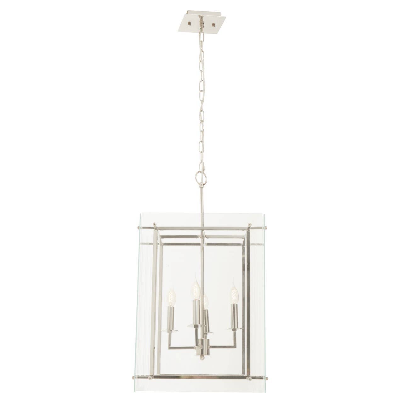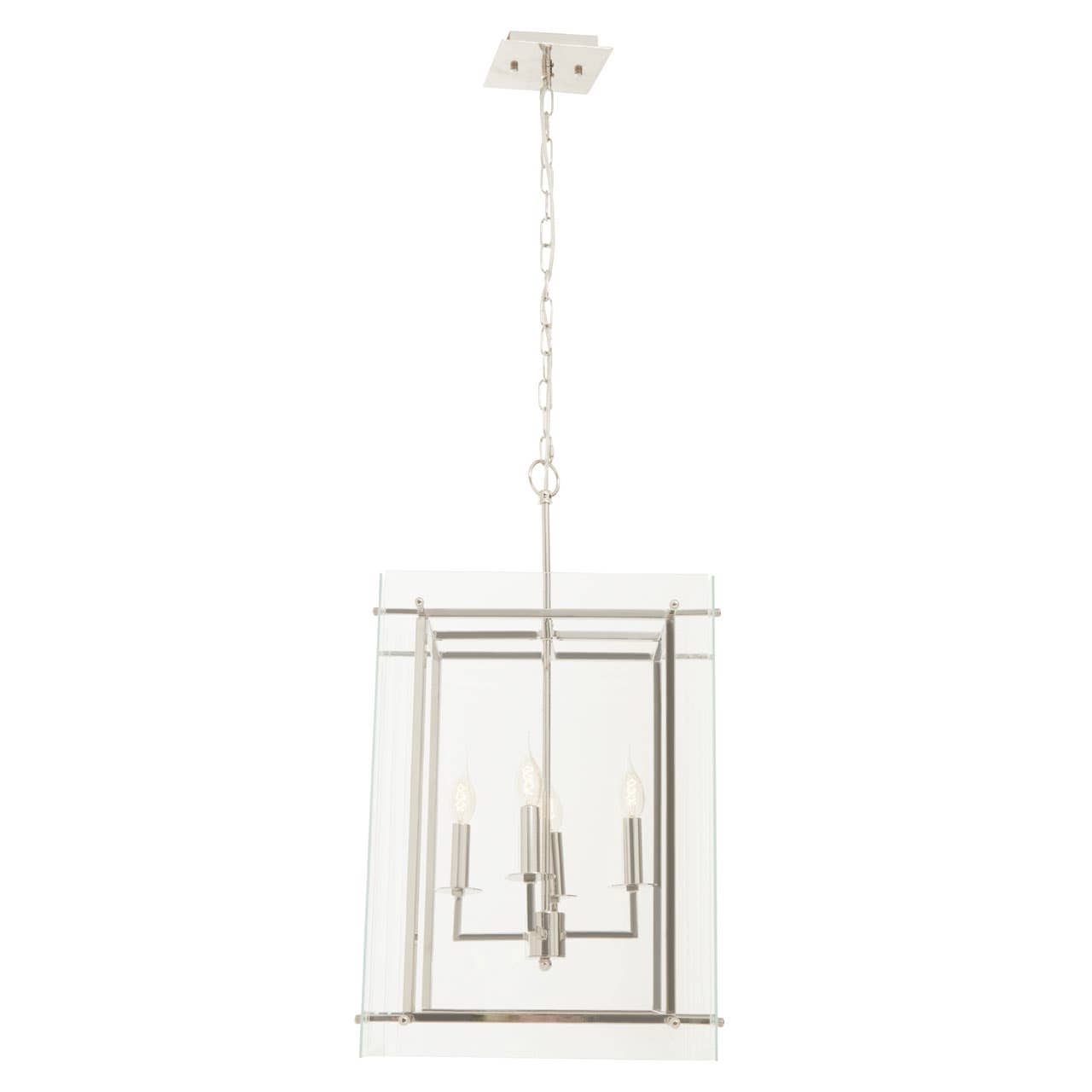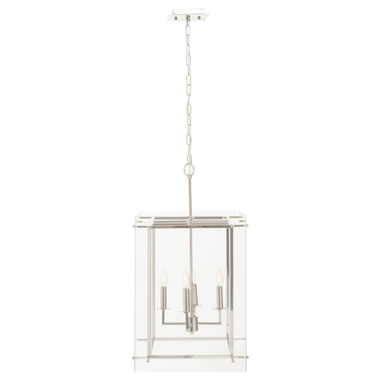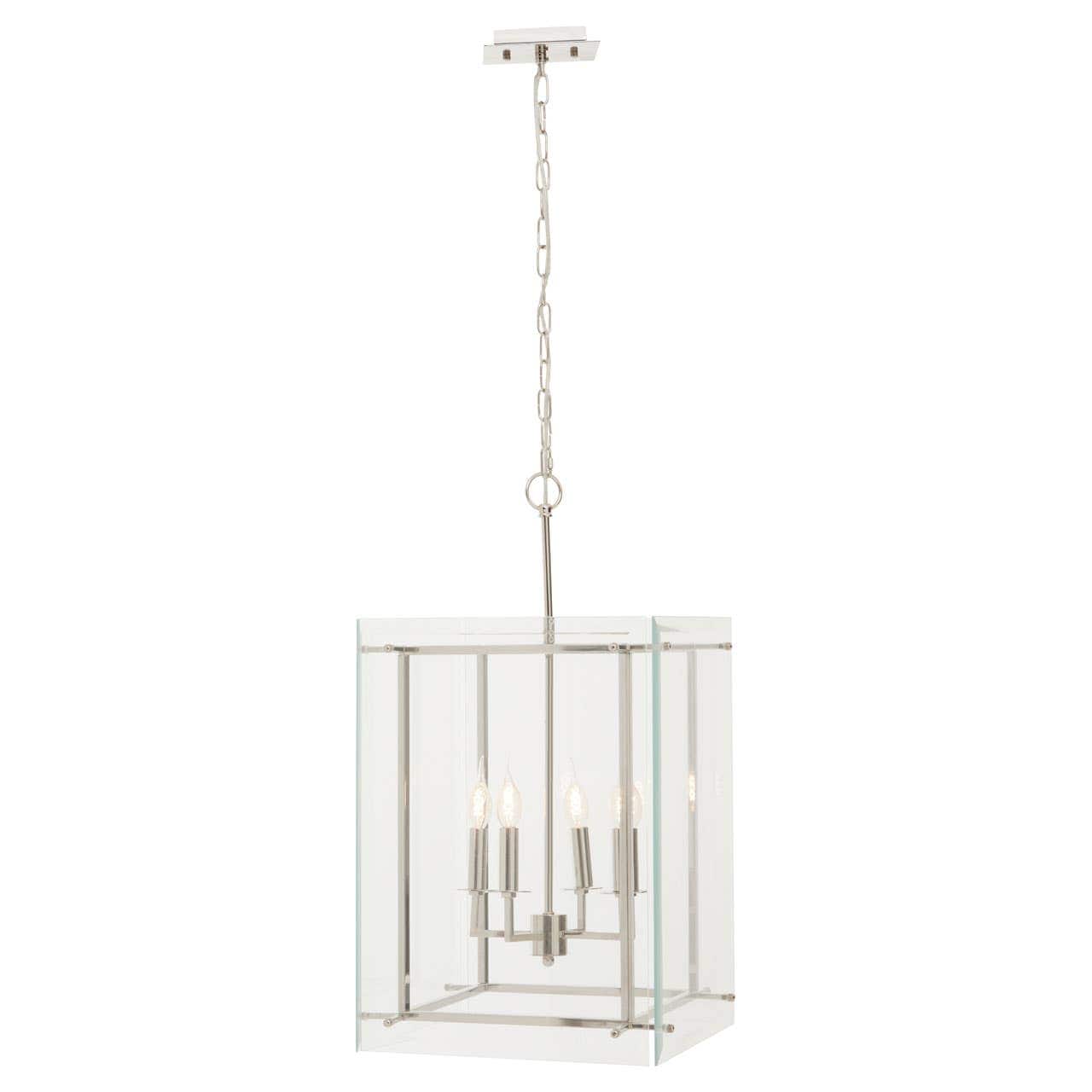 Boasting a slim and box-shaped fixture, this four bulb pendant light creates visual intrigue. The nickel finish metal frame in rectangular shape is encased in a clear glass shade which maximises its value to cast an industrial look and cosy ambience.