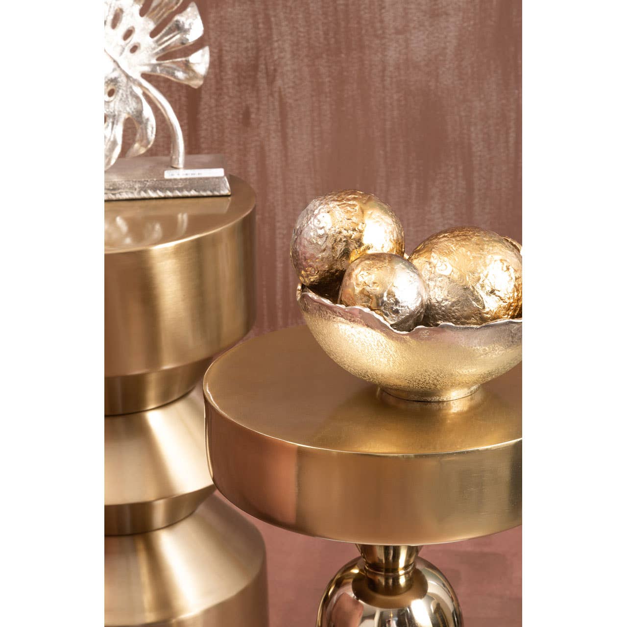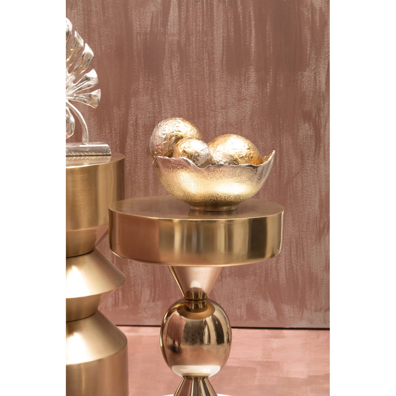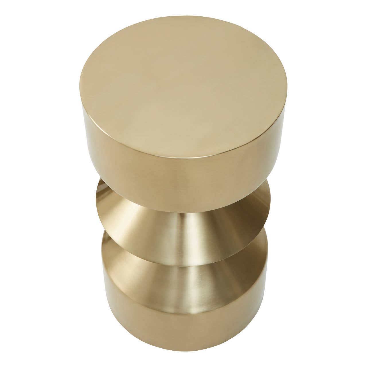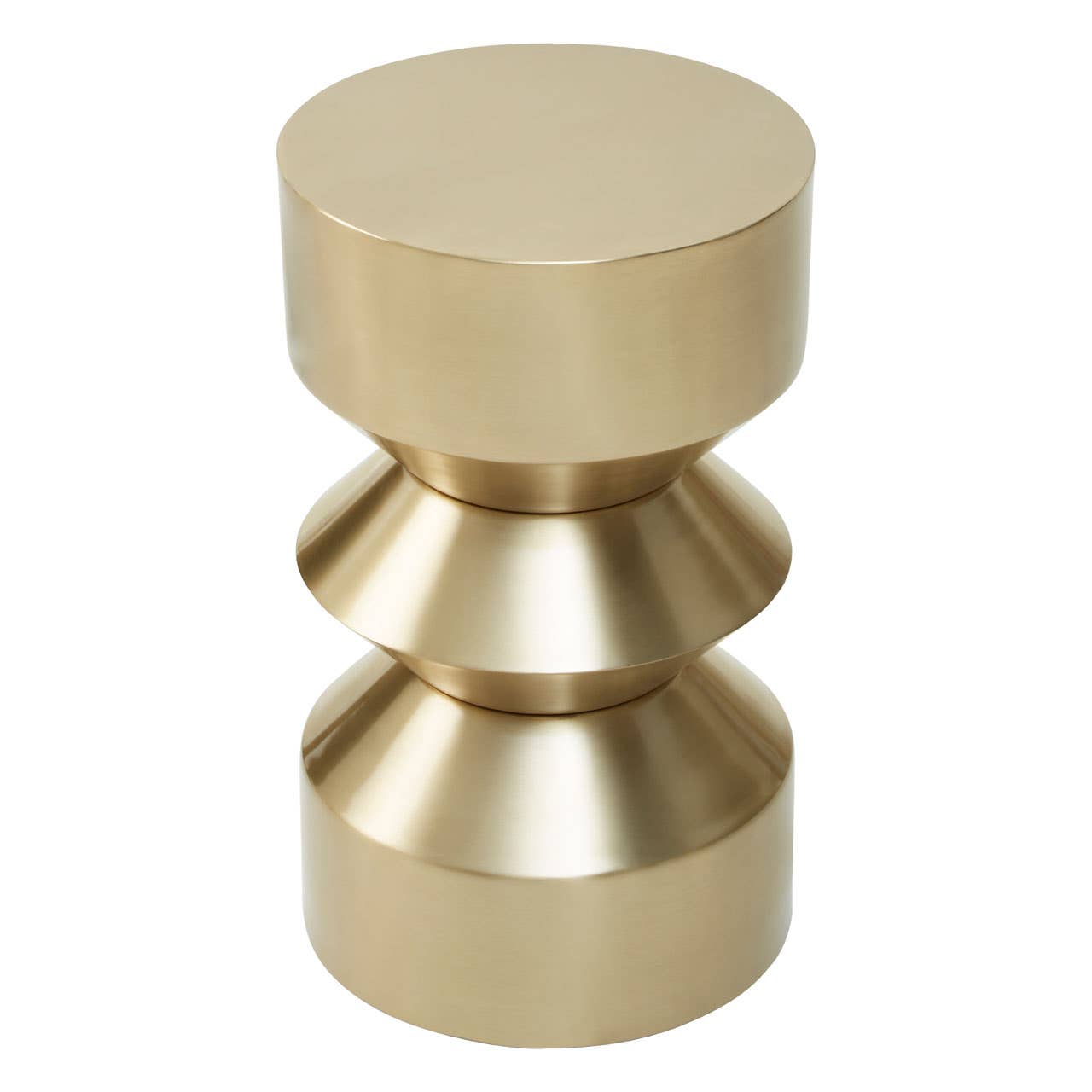 This contemporary side table is constructed from high-quality iron in a warm metallic finish. This side table features stacked geometric and austere shapes making it an ideal solution for home decor.