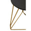 This side table creates a modern geometric form with its sleek and minimal frame accented in a gleaming gold finish. The angular legs combine at the bottom to form a sledge base, topped with a black marble top in a rounded silhouette.