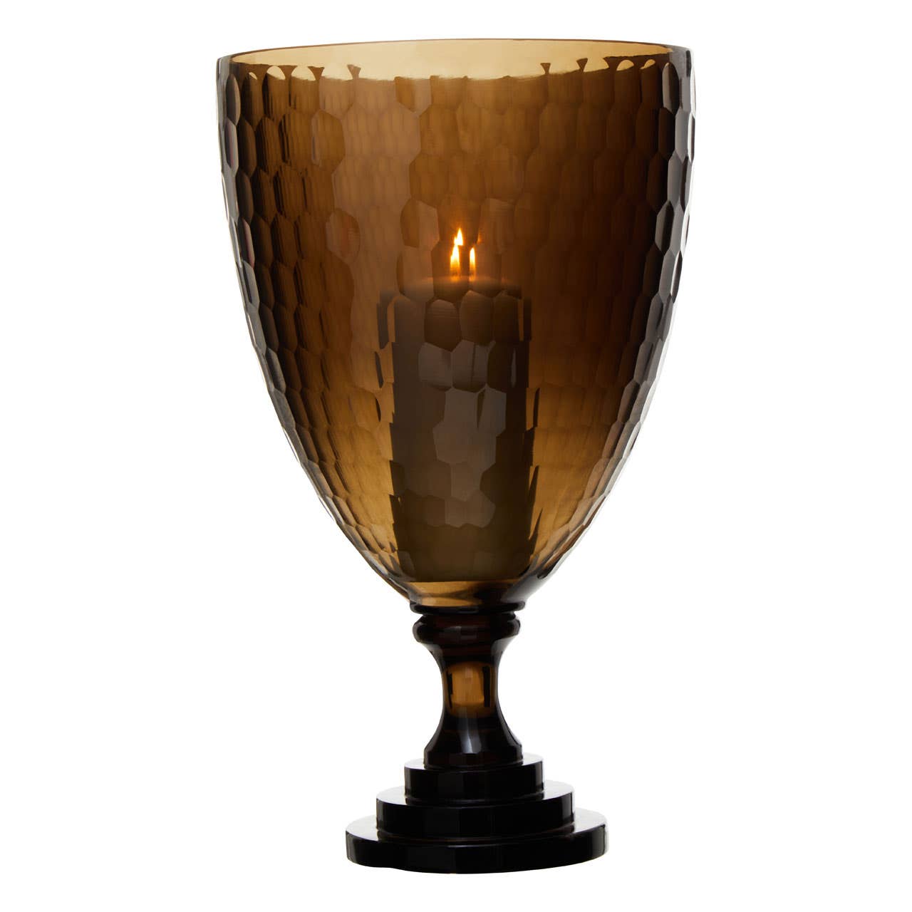 Accented with honeycomb pattern, this black finish glass candle holder will bring classical character and ambience to the table setting. Supported by a sturdy translucent base, this medium candle holder is a lavish addition to mantel and tabletops.
