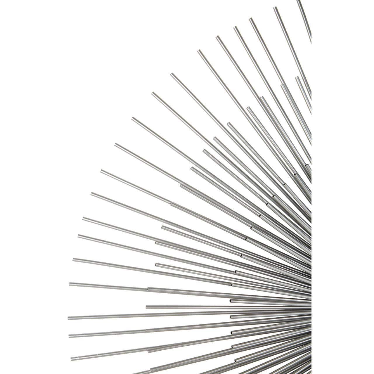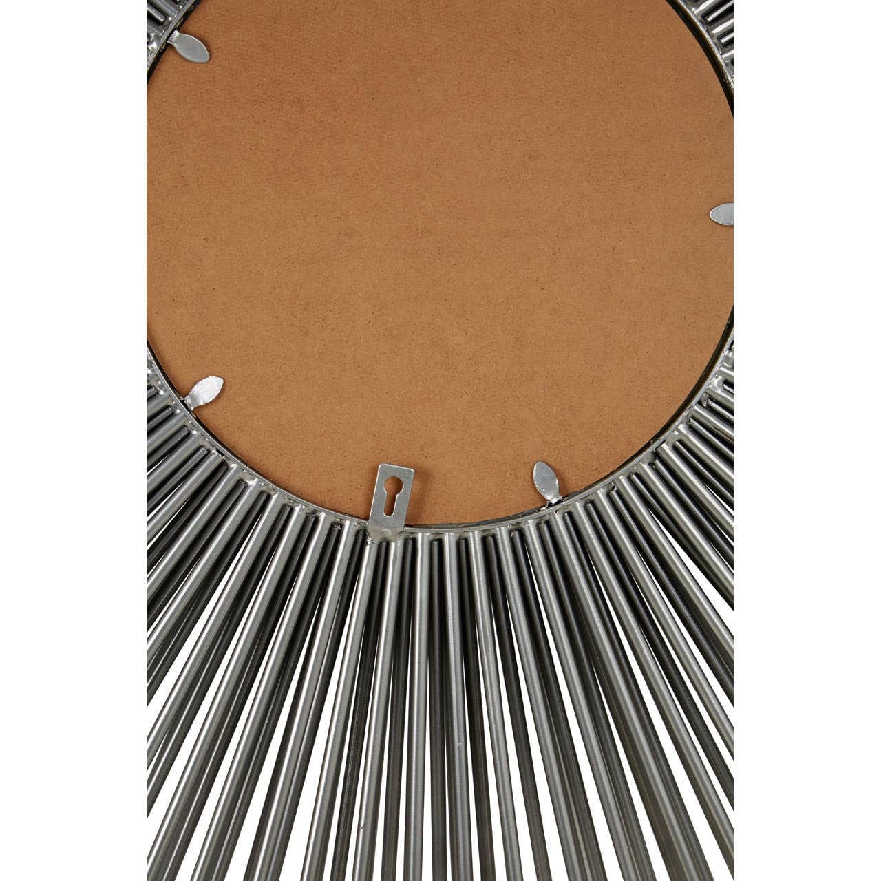 The Cristi wall mirror has a round reflective surface with a concave design that produces a panoramic effect. Its frame is made from tough iron lines that intensify as the eye draws closer to the centre. The silver finish brings a cool accent to the wall.