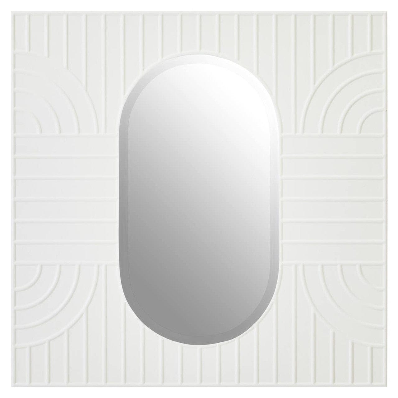 The Danta wall mirror is a conversation starting accent piece in cool off white tone. This mirror features a square wooden frame with geometric lines complementing a variety of boho chic interiors.
