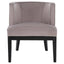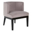 Upholstered in light grey velvet, this chair in sumptuous foam padding features a curved offering comfortable support. A minimal trim enhances the elegance of clean lines while eco friendly rubberwood legs contrast the plush velvet and provide stability.