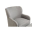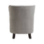 The armchair and footrest are upholstered in soft grey with subtle hemming adding a decorative touch. Both are lifted off the ground by eco-friendly rubber wood legs with a sleek black finish. The chair features a slightly reclined and curved backrest complementing the slight curve in the back legs.