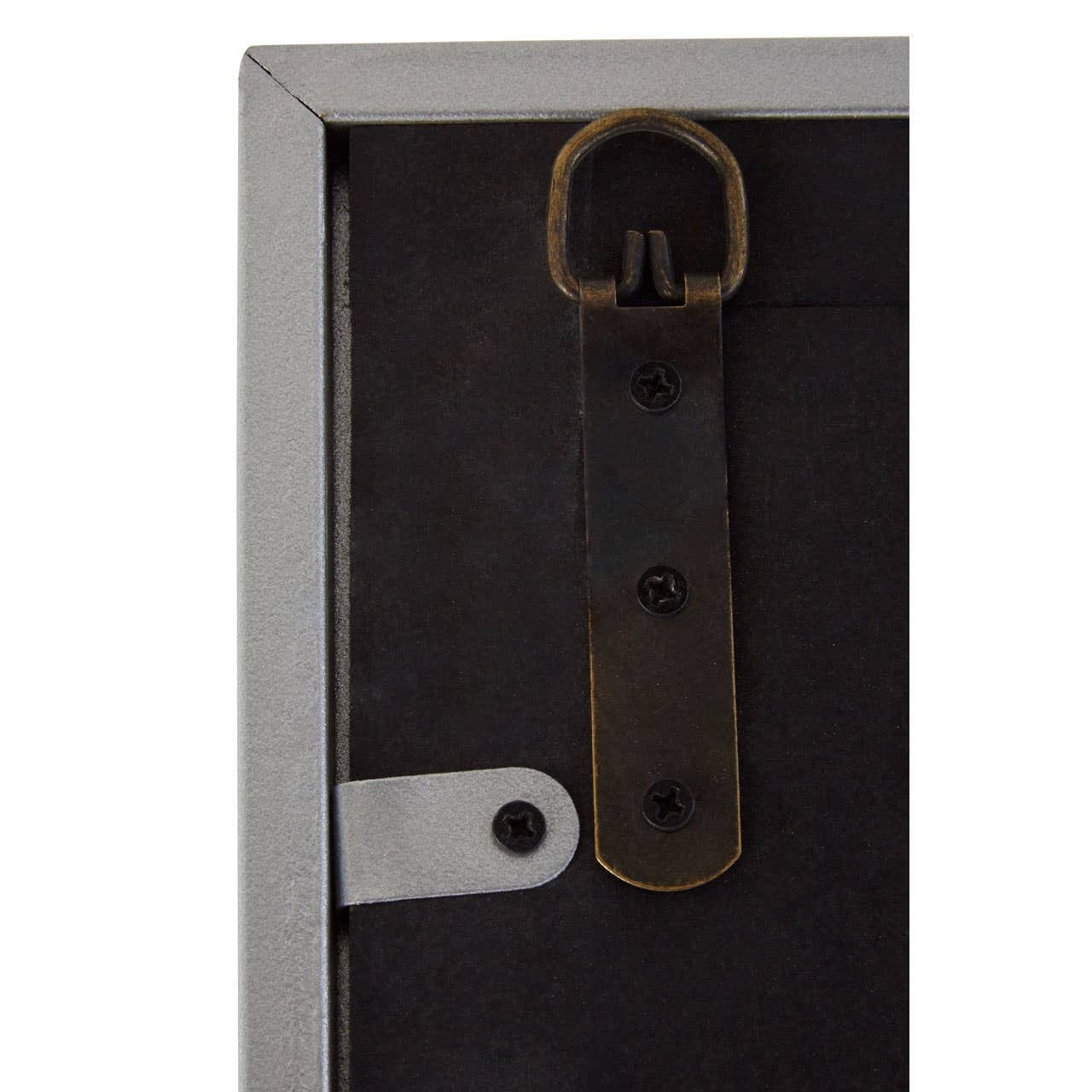 The timeless design of this mirror exhibits a sleek profile and blends easily to eclectic styles. The reflective mirror is accented by a geometric-inspired overlay and encased neatly in a silver finish metal frame.