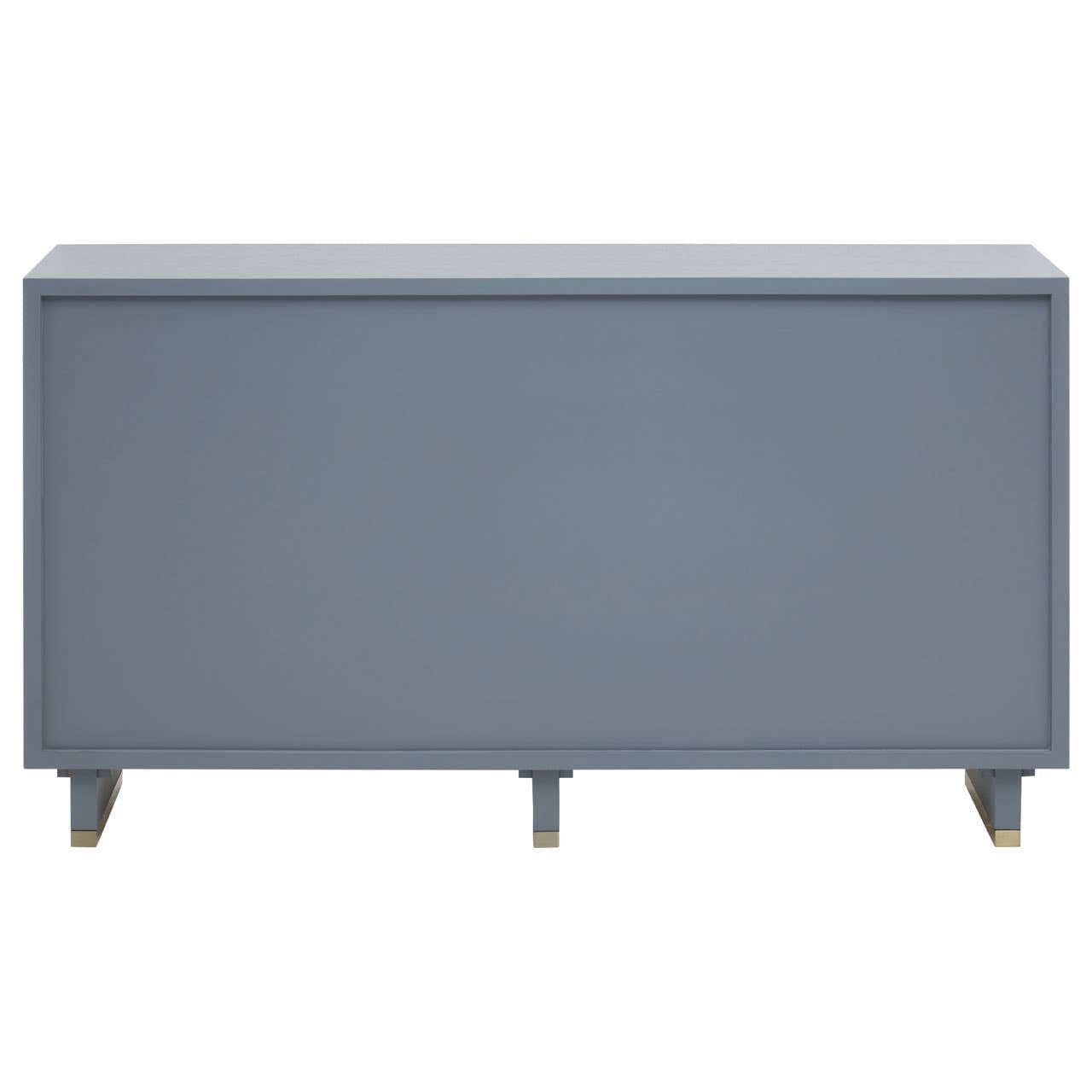 This sideboard offers a combination of drawer and shelf storage. Featuring three spacious drawers and interior shelves behind sleek doors, it has shagreen-effect texture. Gold accents add a subtle touch of opulence, making it a chic and practical addition to modern living space.
