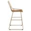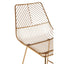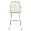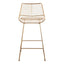 This highly contemporary bar chair achieves its minimal look thanks to the seat's use of tough gold coloured metal wire. Its tapered backrest is divided into three sections, two of which are configured to give the wire design a leaf effect. The third lower section is composed of vertical wires that run through the length of the seat. It stands on elongated A-frame legs which support a wireframe footrest.