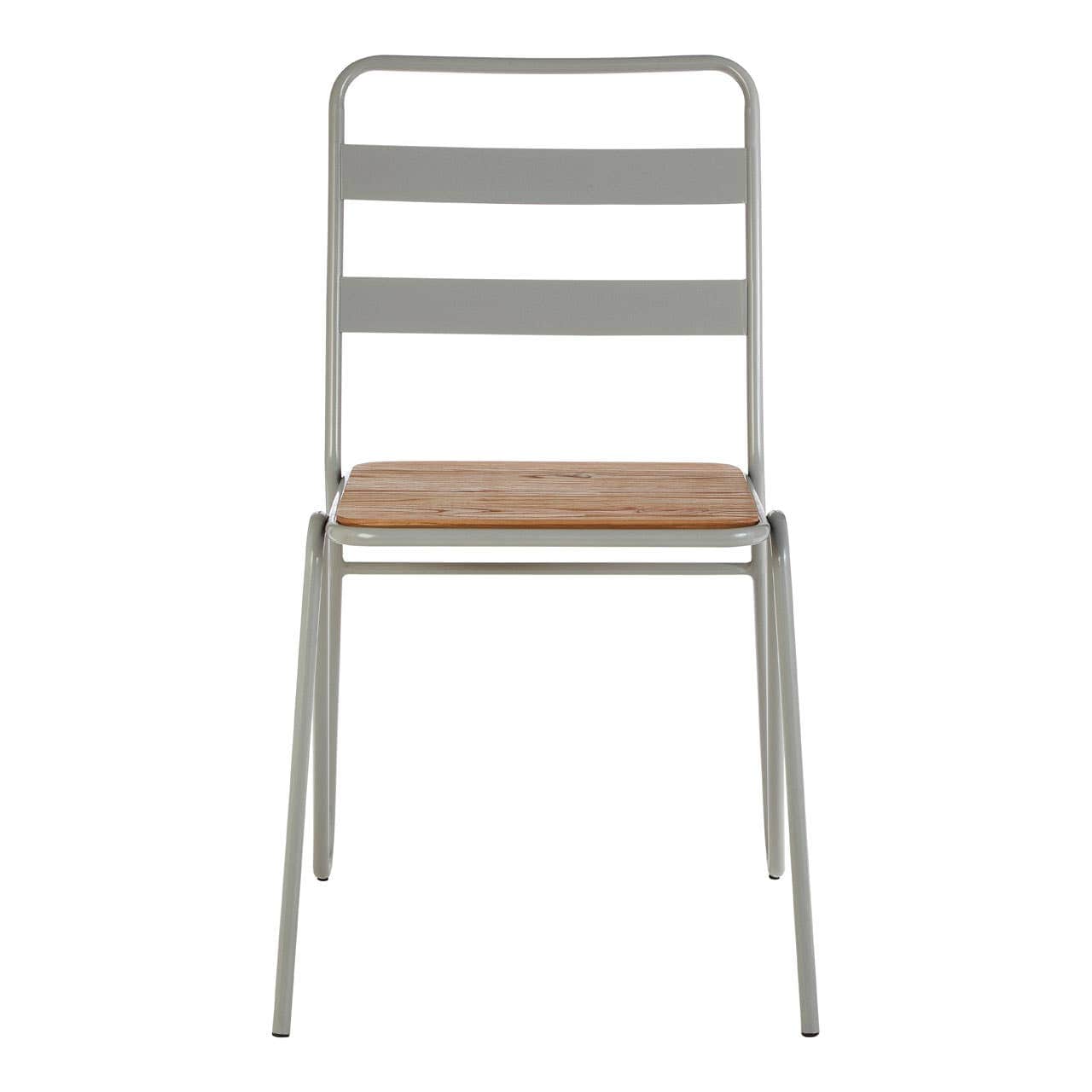 The frame of the District chair is made from strong metal and is given a demure grey finish. A pair of metal bands extends across the backrest to provide added support. Its seat is formed from a single piece of natural elm wood. The wood's deep brown colour and interlocked grain add an earthy touch to this New York loft-inspired piece.
