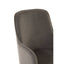 The Eliza dining chair stands on four tapered legs, with the two back legs dramatically angling outwards, resulting in a striking silhouette. Created from stainless steel, the legs feature a reflective silver finish.