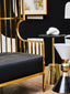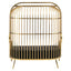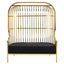 With a bird cage like design in reflective gold finish, this two seat sofa features cage bars which combine from the top to form a dome shape over the chair. Generously cushioned seat is covered in black faux leather and contrasts the high shine polish to make a statement.
