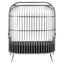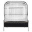 With a bird cage like design in reflective silver finish, this two seat sofa features cage bars which combine from the top to form a dome shape over the chair. Generously cushioned seat is covered in black faux leather and contrasts the high shine polish to make a statement.