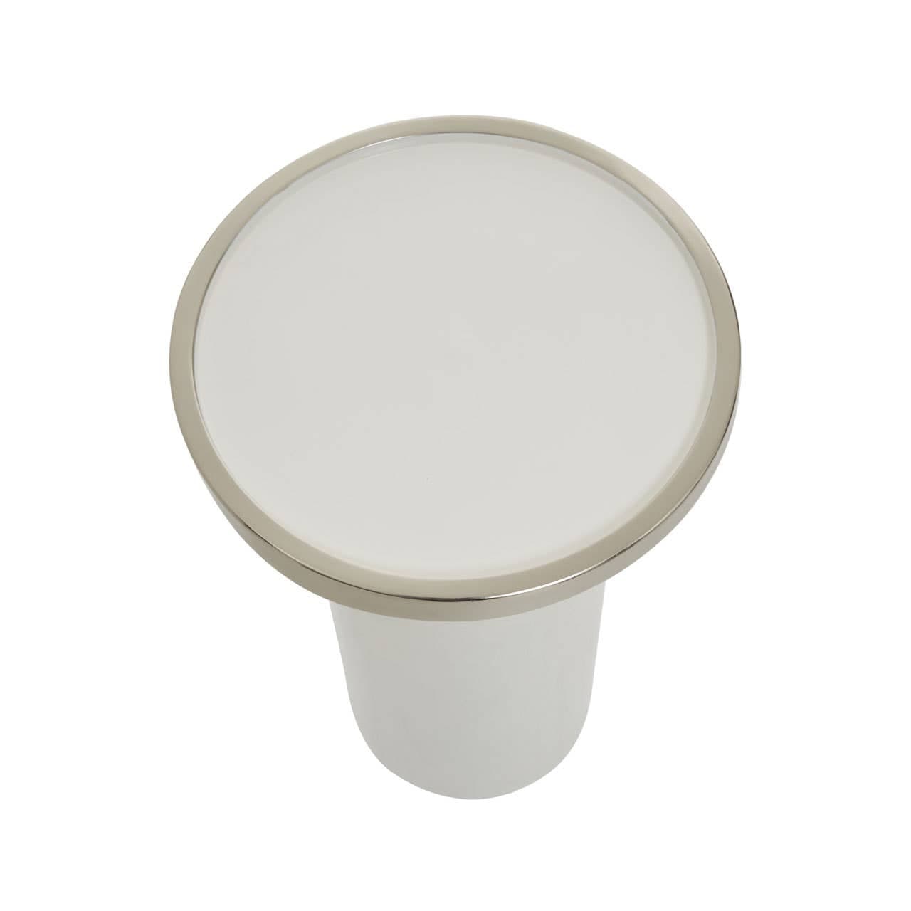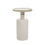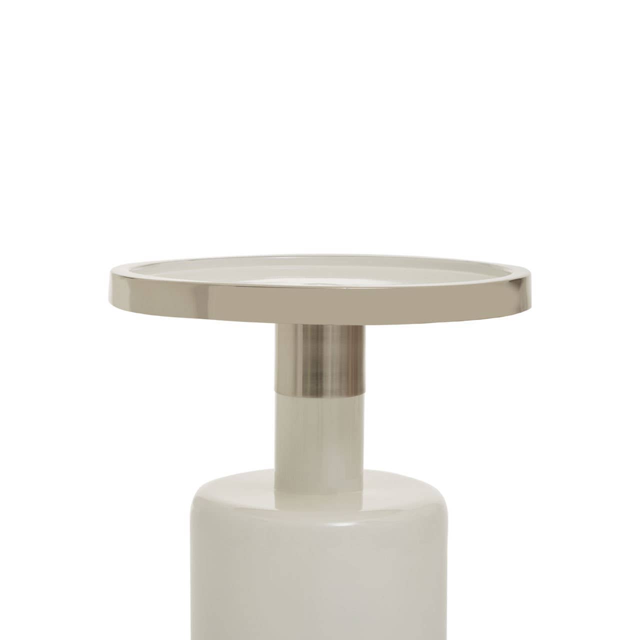 Made from sturdy iron, this side table has a pillar design accented in a smooth cream finish. The sleek and round top is enhanced with the gold finish edge and is lifted above the cylindrical base through a tall neck.