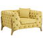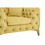 Bold citron coloured fabric upholsters this striking chair. The chair is formed around a strong frame made from natural wood. The vibrant colouring brings a modern feel to the classic button tufting. Pair with the Esme three seater sofa to create a coordinated look in the living room.