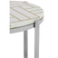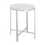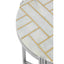 A distinctive geometric design embellishes the table's top, it's striking gold finish contrasting with the crisp white marble top. The table's art deco style frame counterpoints the warm metallic design with its cool silver finish.