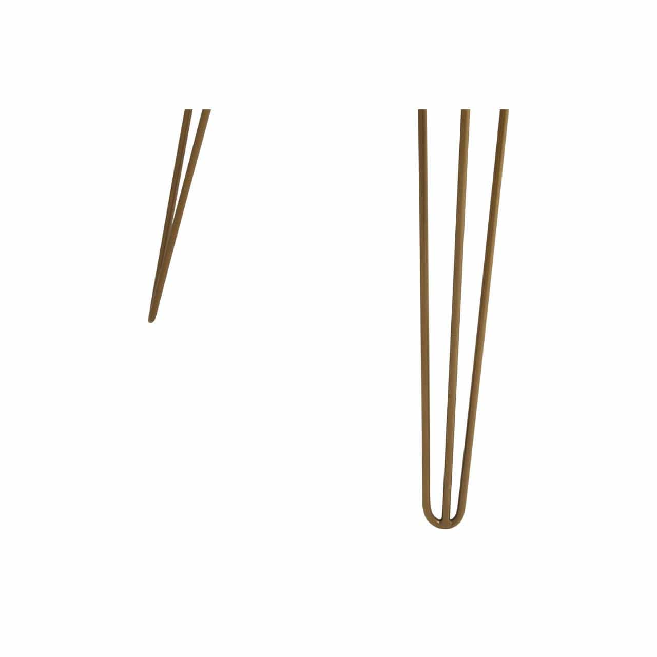 This console table is well-suited for displaying antique sculptures and ornaments. Boasting a wood veneering effect, this console table offers two storage drawers, and the tabletop rests neatly over hairpin styled metal legs in the warm metallic finish.