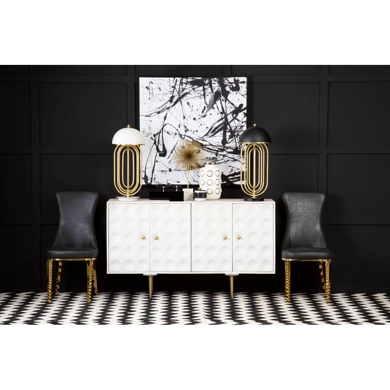 Crafted from faux black leather, this chair has padded seat and curved backrest in a smooth texture. Its gold finish stainless steel legs feature clean lines in the luxe accent which seamlessly blend with the soft upholstery.